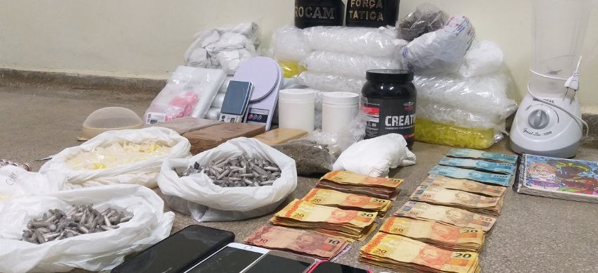 No veículo ocupado pelos suspeitos e no interior de uma residência apontada por eles foram apreendidos 2,5 kg de crack, 1,3 kg de maconha, 1kg de cocaína, 12 mil reais, celulares e apetrechos utilizados na confecção e distribuição dos entorpecentes.