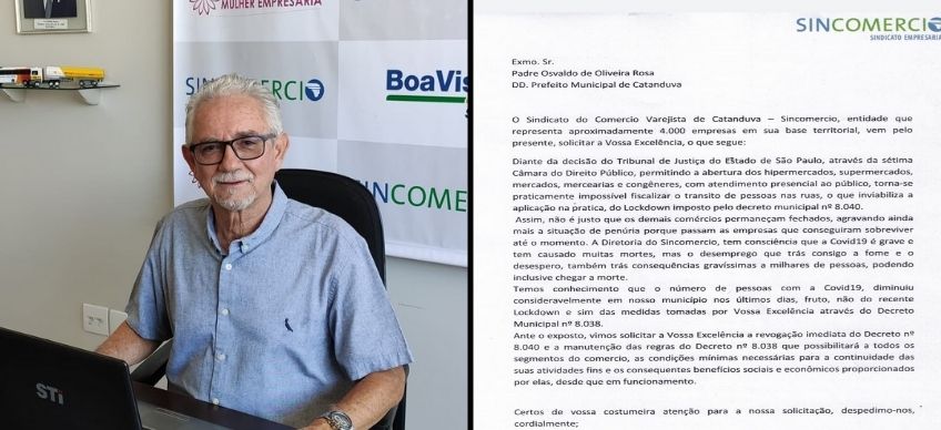 O presidente do Sindicato do Comércio Varejista – Sincomercio, Ivo Pinfildi Júnior, pediu ao prefeito de Catanduva, Padre Osvaldo de Oliveira Rosa, a revogação imediata do Lockdown em Catanduva.