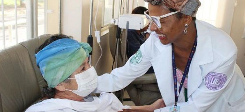 Em sua última sessão de quimioterapia, a senhora Maria Lúcia Monteiro Santos não escondeu a felicidade e pediu para sair de lá com um novo turbante para fazer surpresa aos familiares que a aguardavam.