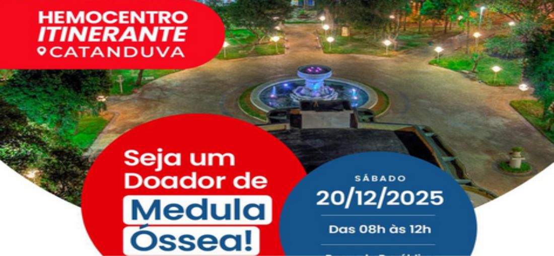 A esperança e a solidariedade serão o foco das ações neste sábado, 20 de dezembro, em Catanduva. O Hemocentro Itinerante estará presente na Praça da República, das 8h às 12h, realizando o cadastro de novos doadores de medula óssea. A iniciativa busca mobilizar a população para um gesto simples que pode salvar vidas.