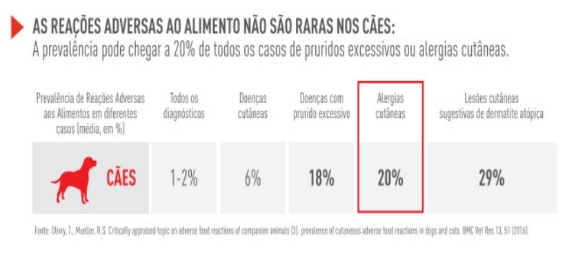 Dentre os casos de alergias cutâneas relatadas em cães, cerca de 20% são relacionadas às reações adversas aos alimentos. Por isso, podemos dizer que as sensibilidades alimentares não são raras nos pets e estão se tornando cada vez mais frequentes na rotina do Médico-Veterinário.