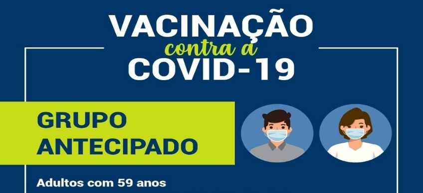 A Secretaria Municipal de Saúde antecipa mais um grupo para vacinação contra a covid-19, a partir desta quinta-feira, dia 10. Dessa vez, adultos com 59 anos serão imunizados .
