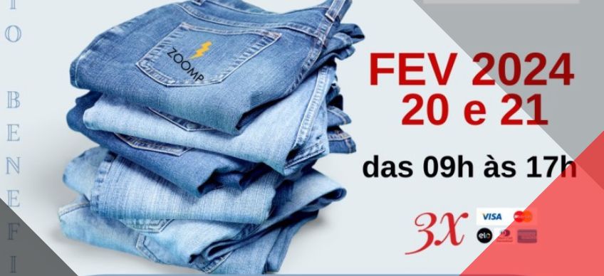 Acontece entre os dias 20 e 23 de fevereiro o Outlet Jeans Direto da Fábrica com parte da renda destinada aos hospitais Padre Albino e Emílio Carlos. Das 9h às 17h, serão vendidas peças de modelos femininos e masculinos de marcas de renome, com parcelamento em até 3x sem juros no cartão de crédito.