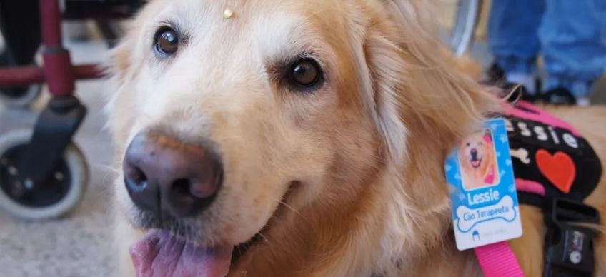 Visita de Lessie fez parte da Terapia Assistida por Animais, que ajuda no bem-estar físico e emocional de pacientes de hospitais da Fundação Padre Albino.