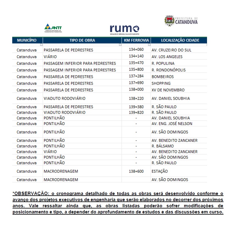 A ‘Solução Integrada’ que propõe mudança nas obras de Catanduva é resultado de uma análise conjunta feita pela Rumo e com aval da ANTT (Agência Nacional de Transportes Terrestres) e da administração municipal.