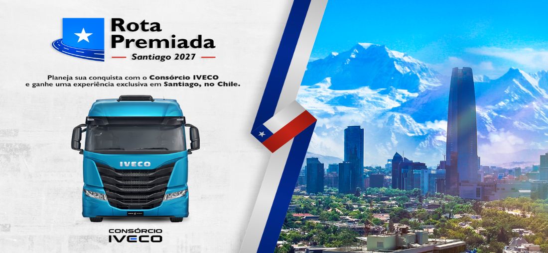 Com objetivo de impulsionar a comercialização de cotas e ampliar o acesso ao crédito planejado, o Consórcio IVECO realiza a promoção "Rota Premiada – Santiago 2027". A ação, válida em todo território nacional, premia clientes com uma viagem com acompanhante para Santiago, no Chile.