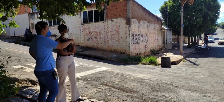 Vereadora Taise Braz visita local onde há problemas de escoamento de água junto a engenheiro da SAEC