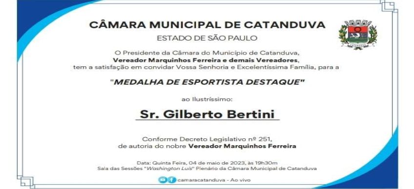 Leia mais: Câmara entrega Medalha “Esportista Destaque” a Gilberto Bertini