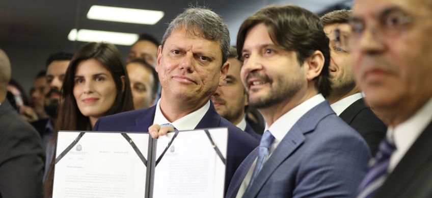 O governador Tarcísio esteve no Palácio 9 de Julho para a entrega da proposta, que tramitará em regime de urgência