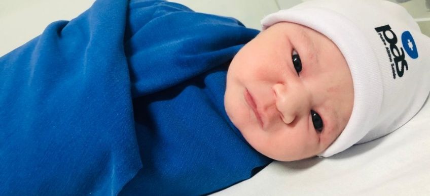 Todos os bebês nascidos na Maternidade do Hospital Padre Albino, desde o dia 30 de junho, estão recebendo touca personalizada do Padre Albino Saúde.