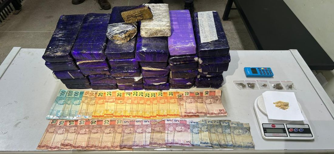 O suspeito, de 21 anos, utilizava a casa onde vivia como ponto de venda de entorpecentes. Foram apreendidos 34 tijolos de maconha, crack, dinheiro, uma máquina de cartão e uma balança de precisão.