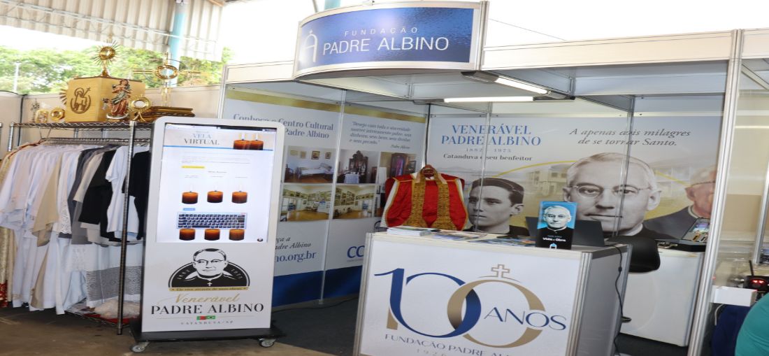 Estande foi montado e personalizado com imagens que mostram o legado de Padre Albino, com suas ações e obras que colaboraram com o crescimento e desenvolvimento de Catanduva, como a Igreja Matriz de São Domingos, Hospital Padre Albino, a instalação da Faculdade de Medicina/FAMECA, o Centro Cultural e Histórico e outras unidades que fazem parte do seu legado.