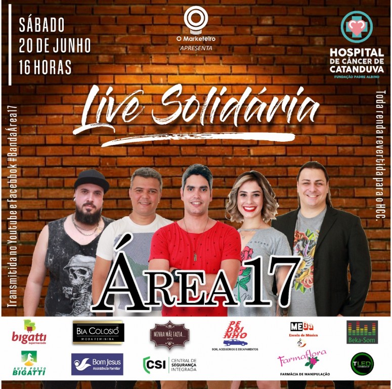Um encontro com a solidariedade está marcado para o dia 20 de junho, às 16h, na live solidária da banda Área 17 pró Hospital de Câncer de Catanduva.