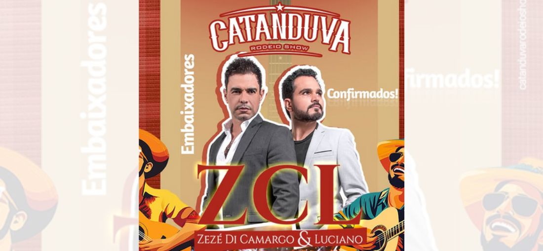 Zezé Di Camargo e Luciano confirmados como embaixadores do Catanduva Rodeio Show 2025. Uma das duplas sertanejas mais amada do Brasil retorna ao evento para mais uma edição inesquecível.