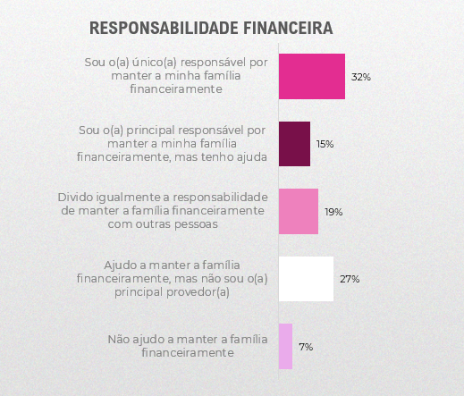 No levantamento nacional, 93% das mulheres participam ativamente nas finanças das famílias. O número representa um acréscimo de 5 pontos percentuais em relação à pesquisa semelhante realizada em 8 de março do ano passado para marcar o Dia Internacional das Mulheres. Desse número, 32% delas atuam como as principais responsáveis pelo provimento da casa.