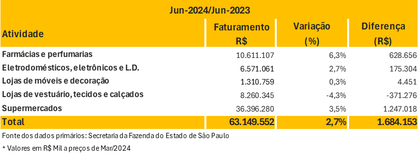 PROJEÇÕES DO FATURAMENTO DO COMÉRCIO VAREJISTA PARA JUNHO DE 2024