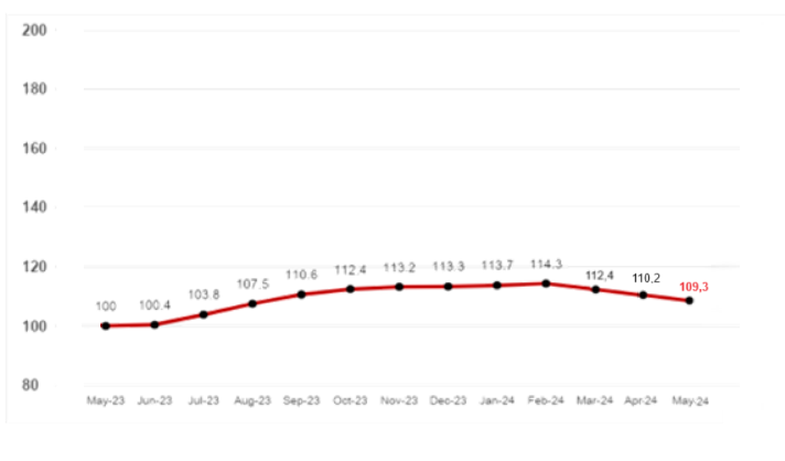 Em maio, as famílias paulistanas continuaram menos propensas às compras. O Índice de Intenção de Consumo das Famílias (ICF), que mede a tendência dos lares de consumir no curto e no médio prazos, na cidade de São Paulo, caiu 0,8%, ao passar de 110,2 pontos, em abril, para 109,3 pontos, no mês seguinte. É o menor patamar desde agosto de 2023. No entanto, na comparação anual, o resultado ainda é positivo, visto que cresceu 9,3% [gráfico 1]. O ICF varia de zero a 200 pontos, em que abaixo de 100 pontos significa insatisfação em relação às condições de consumo — e acima desse patamar, satisfação.