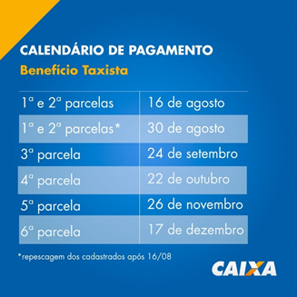 O calendário de pagamento do Benefício Taxista começa na terça-feira (16).