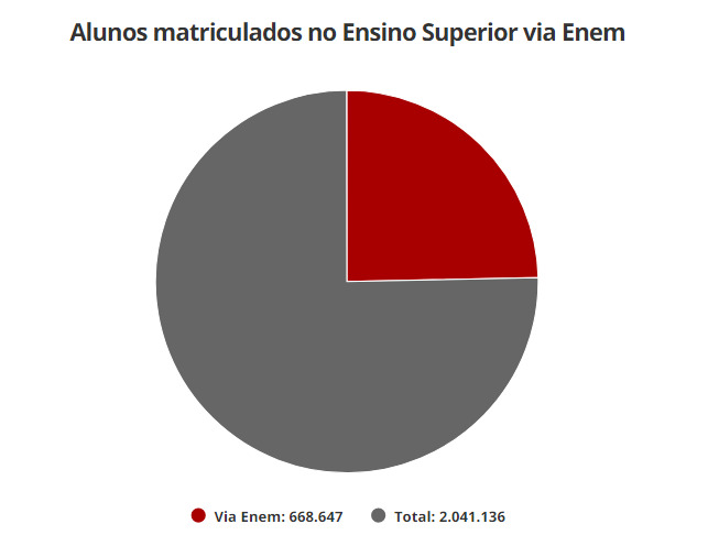 Em 2019, dos 2.041.136 ingressos em cursos de graduação presenciais, 32% (668.647) foram selecionados via Enem, de acordo com o Censo da Educação Superior do Ministério da Educação (MEC). Entre eles, 275.042 entraram em universidades públicas e 393.605 na rede privada.