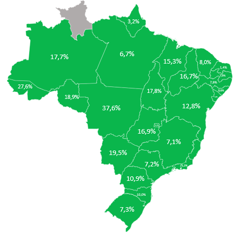 Se considerarmos somente a demanda do mercado regulado, que tem um impacto maior das temperaturas mais elevadas, as variações sobem para 46% no Mato Grosso, 34% no Mato Grosso do Sul, 28% no Acre, 27% no Rio de Janeiro e 11% em São Paulo.