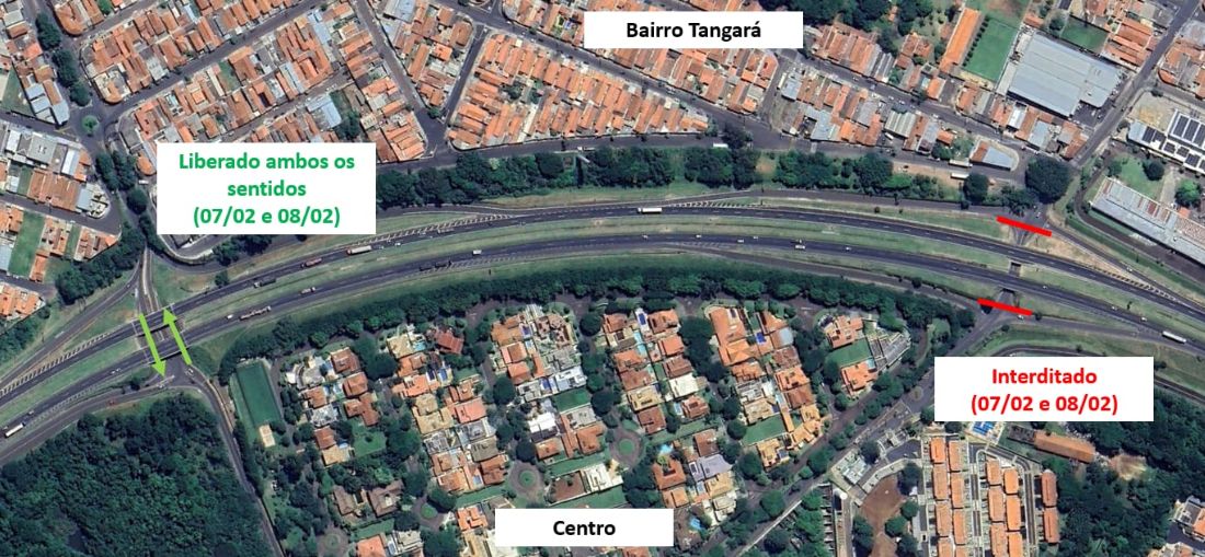 O viaduto localizado no quilômetro 231+180m, que dá acesso ao bairro Tangará, sob a Rodovia Washington Luís (SP-310), em São Carlos (SP), ficará totalmente interditado neste final de semana (amanhã, sábado, 07/02, e domingo, 08/02). O fechamento, das 6 às 19 horas, será necessário para que haja o içamento e a instalação da estrutura metálica de travessia para pedestres.