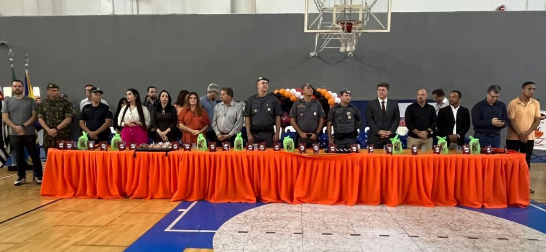 As vereadoras Ivânia Soldati e Laura Luiza Protetora e os vereadores Manoel Gol de Ouro, Gordo do Restaurante, David Roger e Pastor Júlio Zanini prestigiaram nesta quinta-feira (16) a formatura de mais uma turma do PROERD, o Programa Educacional de Resistência às Drogas e à Violência. 528 alunos participaram do curso e receberam seus certificados durante a cerimônia. O evento ocorreu no ginásio do Conjunto Esportivo “Anuar Pachá”.