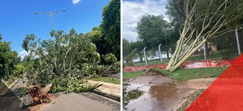 Chuva foi registrada na tarde desta sexta-feira (5). Foram contabilizadas mais de 60 árvores caídas nas vias da cidade.