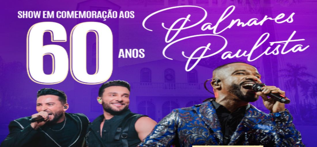 A Prefeitura Municipal de Palmares Paulista preparou uma série de eventos para celebrar os 60 anos da nossa cidade! Serão momentos inesquecíveis de música, cultura e união na Praça da Matriz, e você é nosso convidado especial.