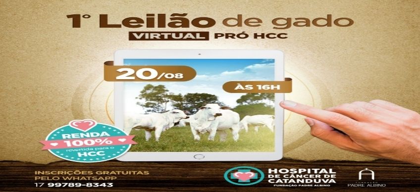 O Hospital de Câncer de Catanduva/HCC promove seu 1º Leilão Virtual no dia 20 de agosto, às 16 horas. As inscrições são gratuitas pelo Whatsapp 17 99789-8343.
