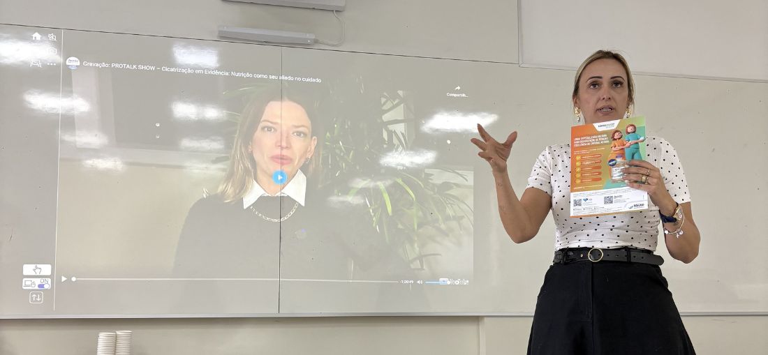 As nutricionistas responsáveis pela Equipe Multiprofissional de Terapia Nutricional dos hospitais Emílio Carlos e Padre Albino, Mariana Aimée Nadalini de Oliveira e Gabriela Fornazari, em parceria com Juliana Bassitt Tedeschi, da Nestlé Health Science, promoveram a capacitação ‘Cicatrização em evidência: Nutrição como aliada no cuidado’, no dia 07 de julho.