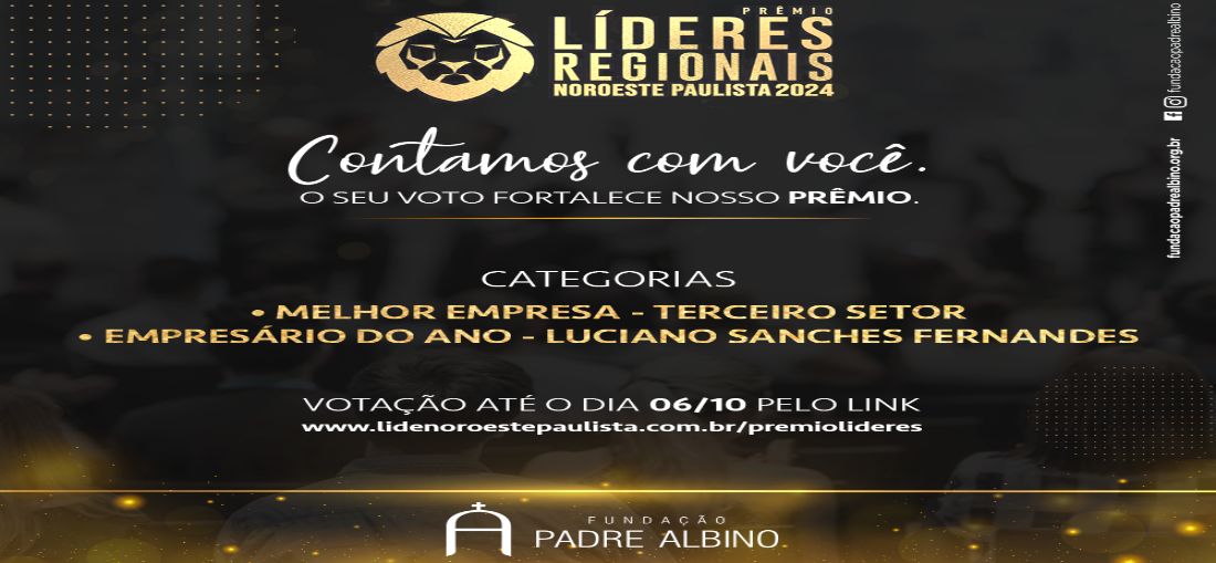 A Fundação Padre Albino foi indicada, na categoria Terceiro Setor, para a segunda fase do Prêmio Líderes Regionais - Noroeste Paulista 2025, o maior reconhecimento de empresas e líderes do noroeste paulista.