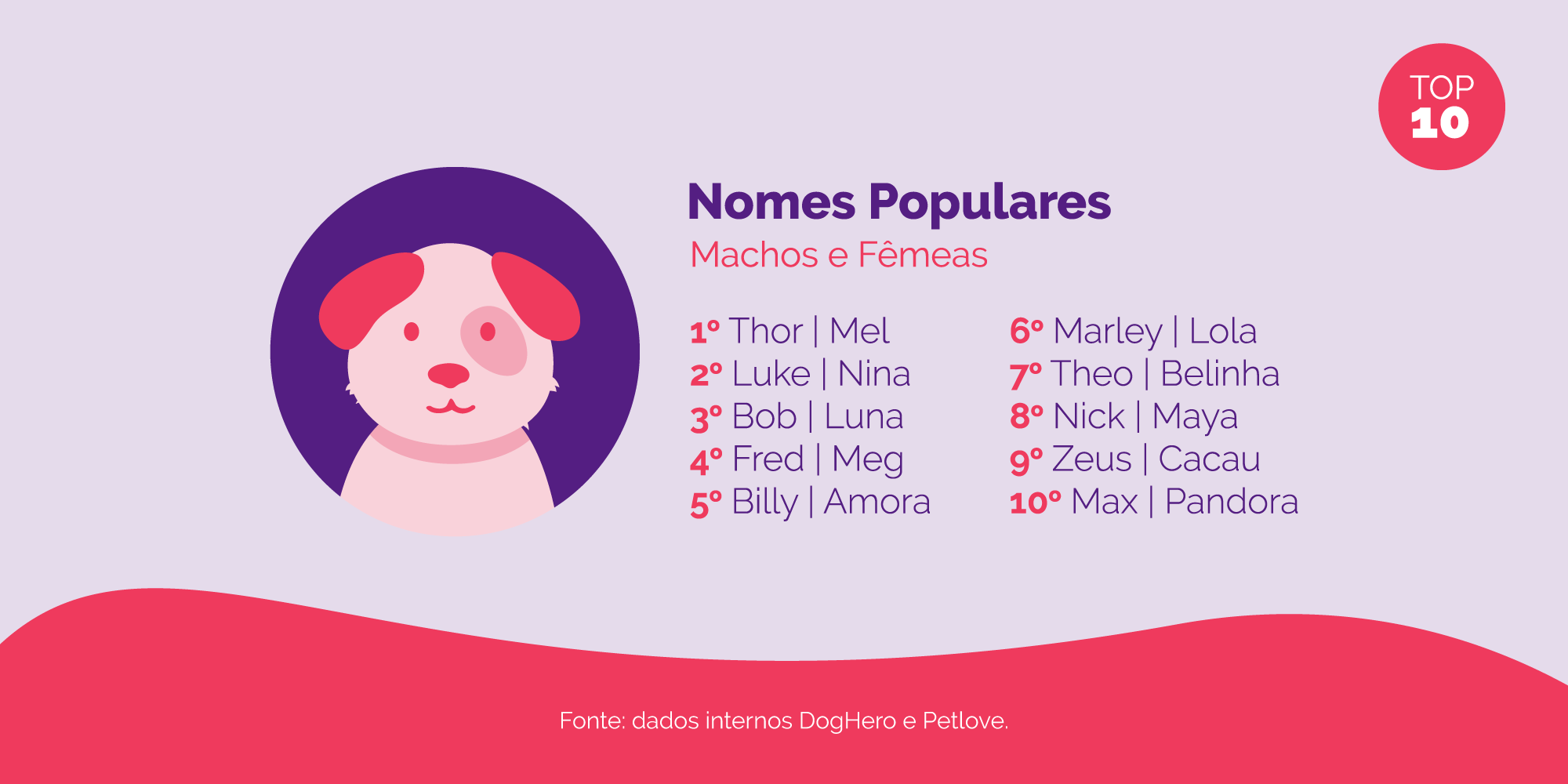 De acordo com o levantamento do novo ecossistema pet, as principais escolhas para nomes foram Thor (1º lugar) e Luke (2º lugar) para cães machos. Para fêmeas, aparecem no topo da lista dos mais escolhidos os nomes de Mel (1º lugar) e Nina (2º lugar). Sobre as raças, o 1º lugar do ranking de cães preferidos vai para o nosso querido vira-lata - também chamado de SRD (sem raça definida) - com 32%, que desde 2016 segue na 1ª posição do ranking, seguido da raça Shih Tzu (12%), que ocupa a 2ª posição.