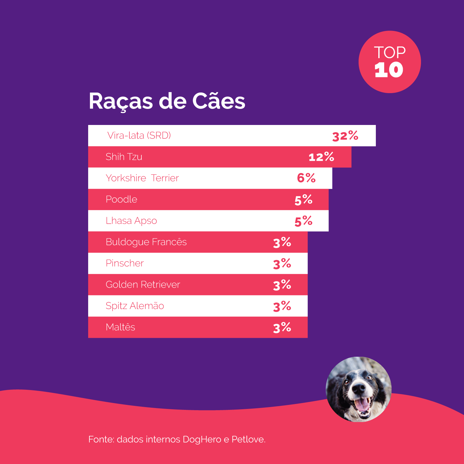 8º Golden Retriever (3%);