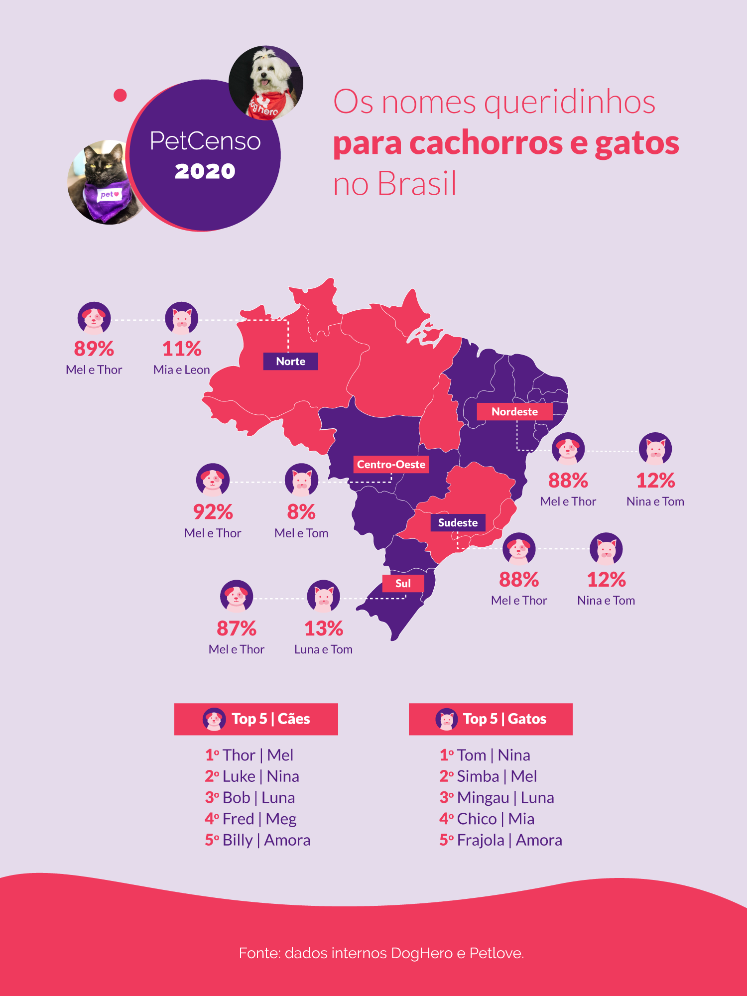 Top 5 Nomes de cães e gatos em cada região do Brasil