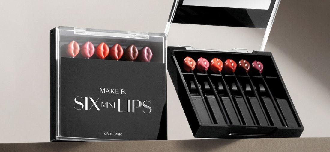 Com seis cores de batons em formato de boquinhas em miniatura, Make B. Six Mini Lips é opção presenteável em temporada de fim de ano