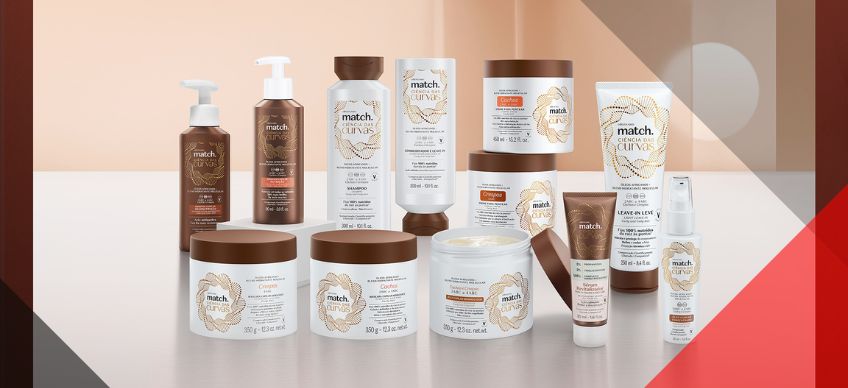 Match Ciência das Curvas foi desenvolvida com ativos de alta performance, resultando em produtos que podem ser combinados entre si, para garantir o tratamento ideal para as necessidades de cada curvatura